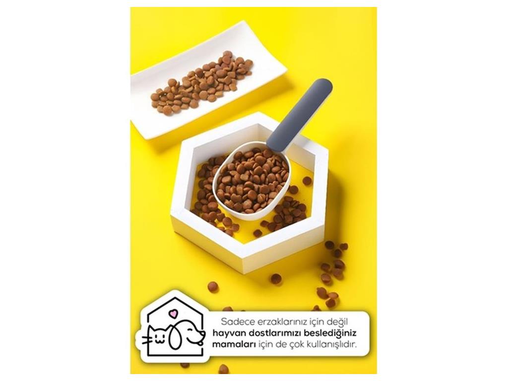 Klipsli ölçü kaşığı ile hem ideal porsiyonları kolayca ölçebilir hem de paketin ağzını klipsiyle kapatarak ürünlerin tazeliğini koruyabilirsiniz.