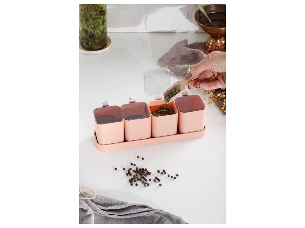 Dört ayrı kapaklı haznesi ile baharatlarınızı taze ve hijyenik bir şekilde saklarken, altındaki kompakt tepsi ile hepsini bir arada tutabilirsiniz.